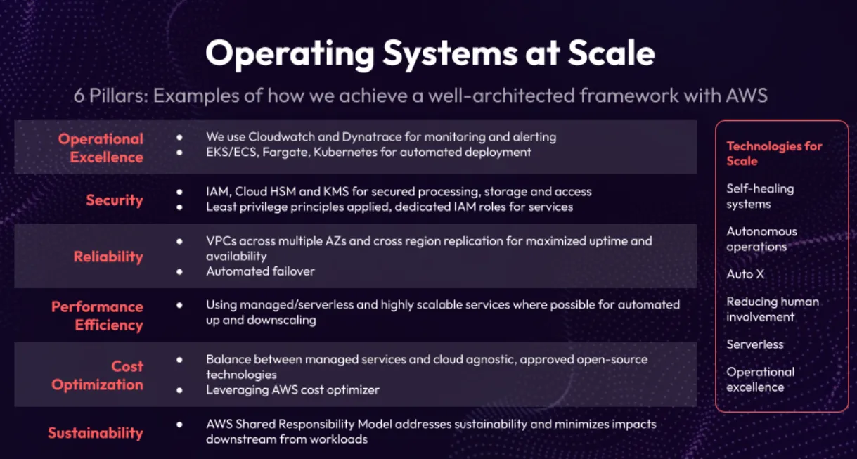 In addition to operational excellence, they prioritize other essential factors such as security, reliability, performance, efficiency, and cost optimization. As they progress, they continuously introduce additional capabilities, including self-healing systems, to further enhance the overall operational efficiency. As mentioned by Suresh, their ultimate goal is to achieve autonomous operations, minimizing the need for human intervention and ensuring seamless functionality throughout the system.