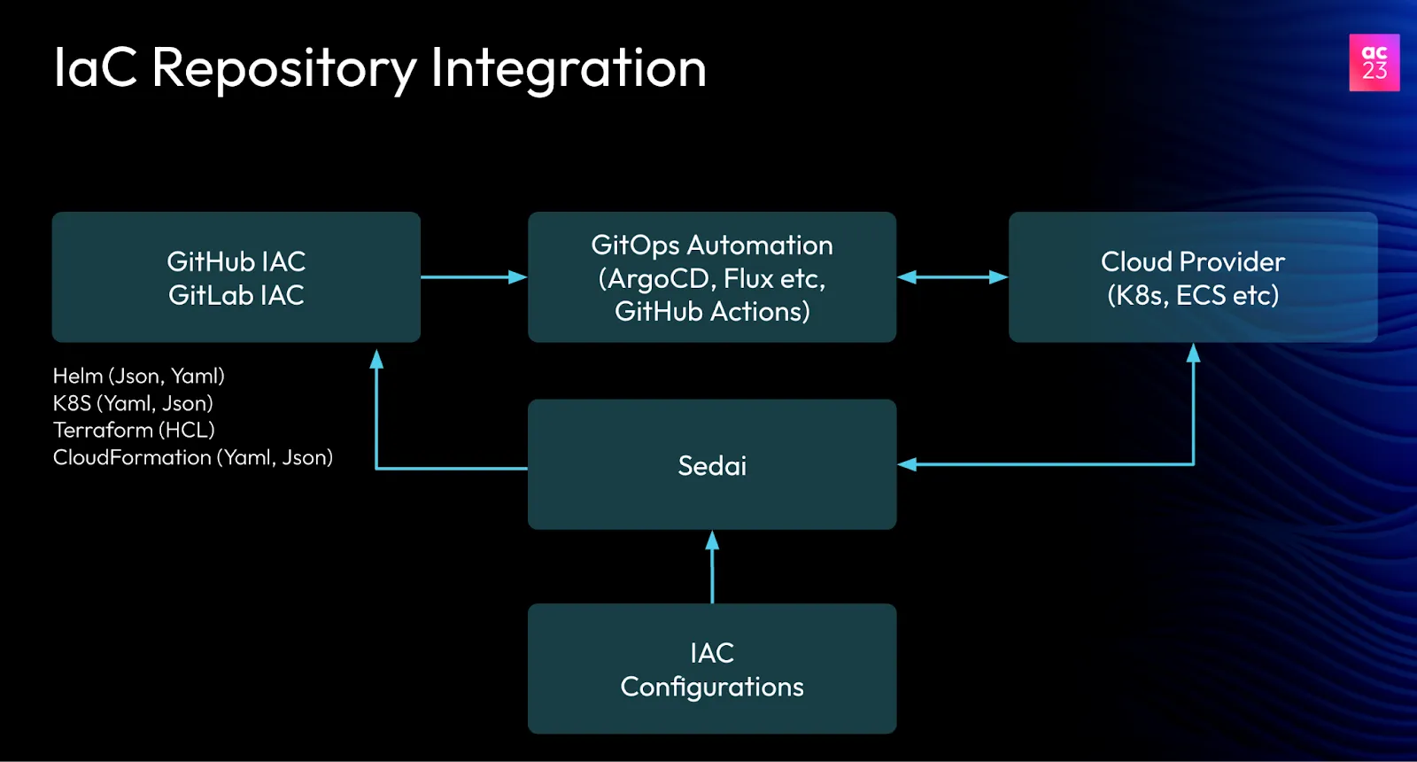What KnowBe4 did was pull the current config after Sedai makes a change, and use that at the time of the deployment. But in that case, the IaC is no longer the source of truth for configs.