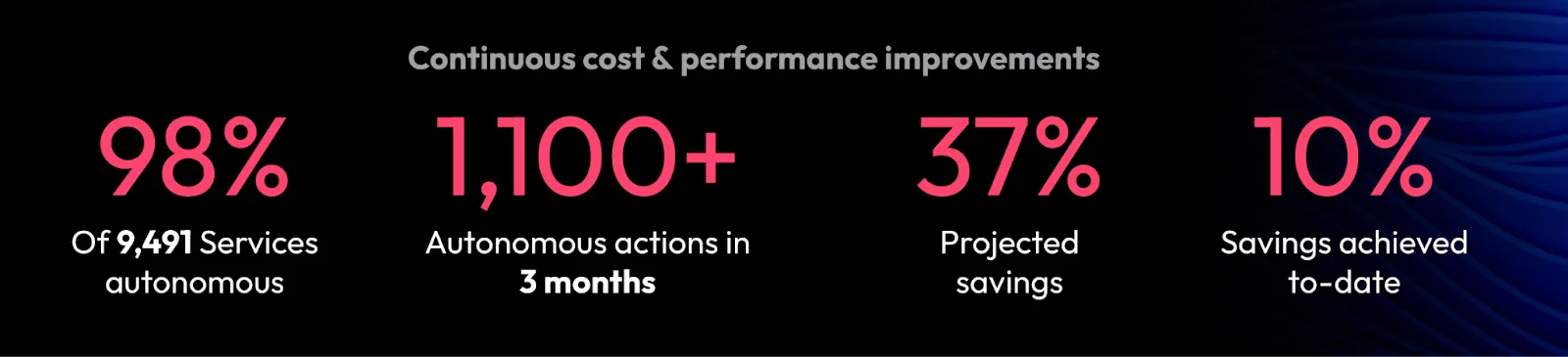 KnowBe4 has also realized impressive results from their deployment of Sedai. Over 9,500 services are connected to Sedai, 98% being optimized autonomously. KnowBe4 has had over 1,100 plus autonomous actions in three months. KnowBe4 is trending towards 27% cost reduction, and already achieved 10% savings.