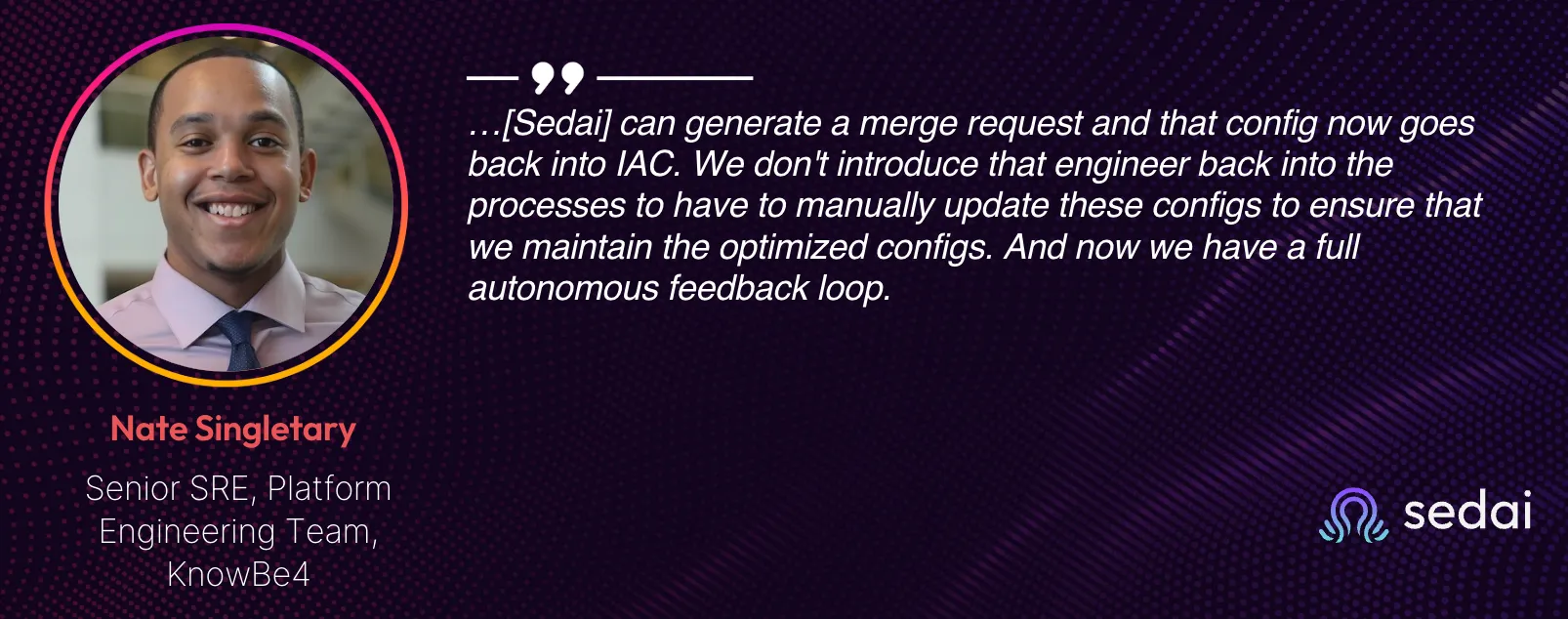 At the same time, while KnowBe4 is continuously releasing and deploying, KnowBe4 also has Sedai working and analyzing our workloads and optimizing them.