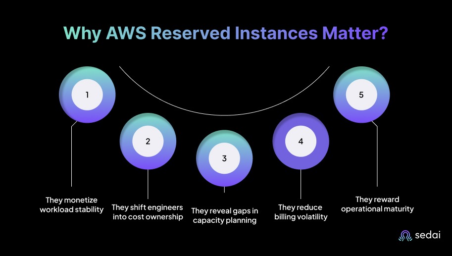 Reserved Instances matter because most production workloads aren’t short-lived experiments. They run for months and rarely justify paying full On-Demand rates.