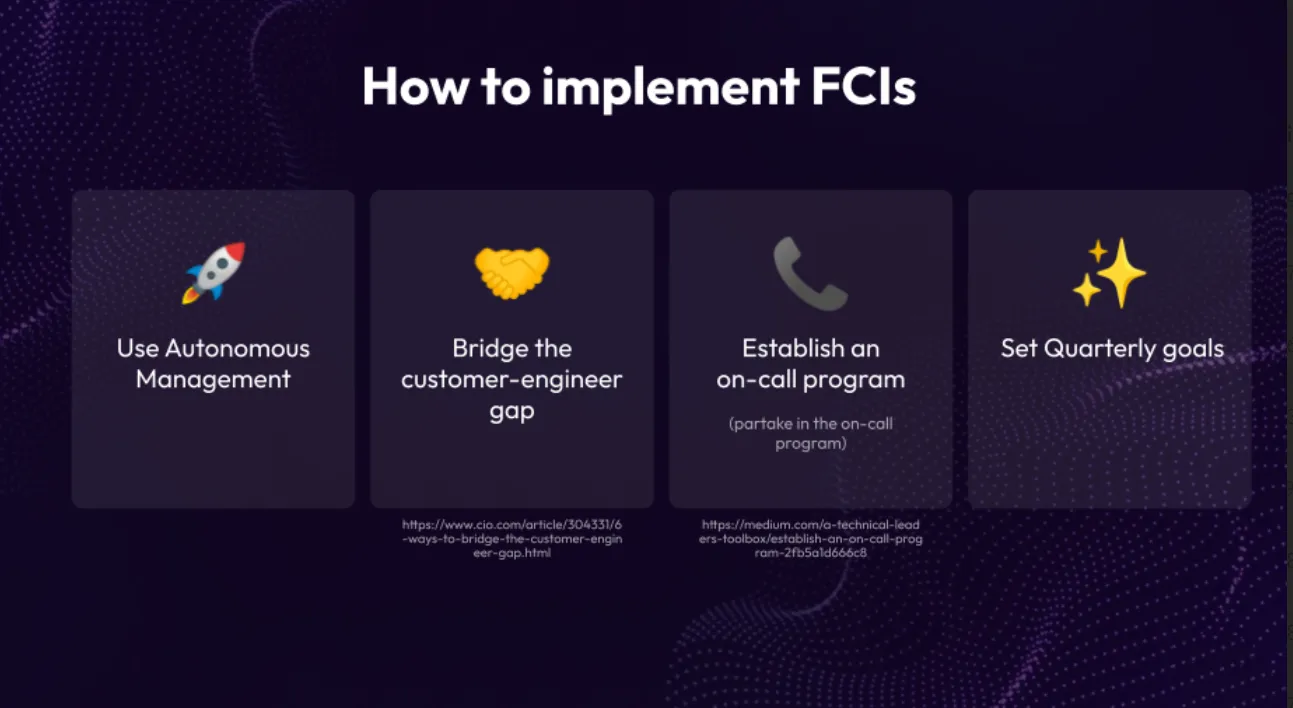 Furthermore, mindset played a crucial role. It became a priority to emphasize that solving customer problems was our core objective. As part of this commitment, we set a goal to minimize FCIs, and we successfully achieved that. For more insights on bridging the customer-engineering gap, I have provided a detailed write-up on cio.com that you may find interesting. Additionally, implementing an on-call program proved beneficial. Instead of engineers focusing solely on their backlog items during their on-call week, their responsibility shifted towards collaborating with customer success teams. They actively worked on understanding customer concerns, investigating error logs through tools like Datadog or Splunk, and resolving issues promptly. This change in approach ensured a customer-centric mindset and drove continuous improvement. Kindly proceed to the next slide for further details.