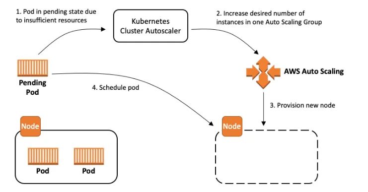 The Cluster Autoscaler operates by simulating node changes, deciding if nodes should be added or removed before making the adjustment. To enhance performance, consider using Node Groups with similar configurations and maintaining consistency across Auto Scaling groups. This approach helps ensure nodes are optimally used, minimizing resource waste. To keep security tight, limit the Cluster Autoscaler’s permissions to only required actions, such as updating DesiredCapacity in the Auto Scaling group.
