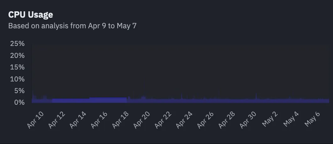 Below is an example from a Sedai AWS EC2 customer environment of an underutilized instance with averaging just a few percent of CPU being used across a one month period: