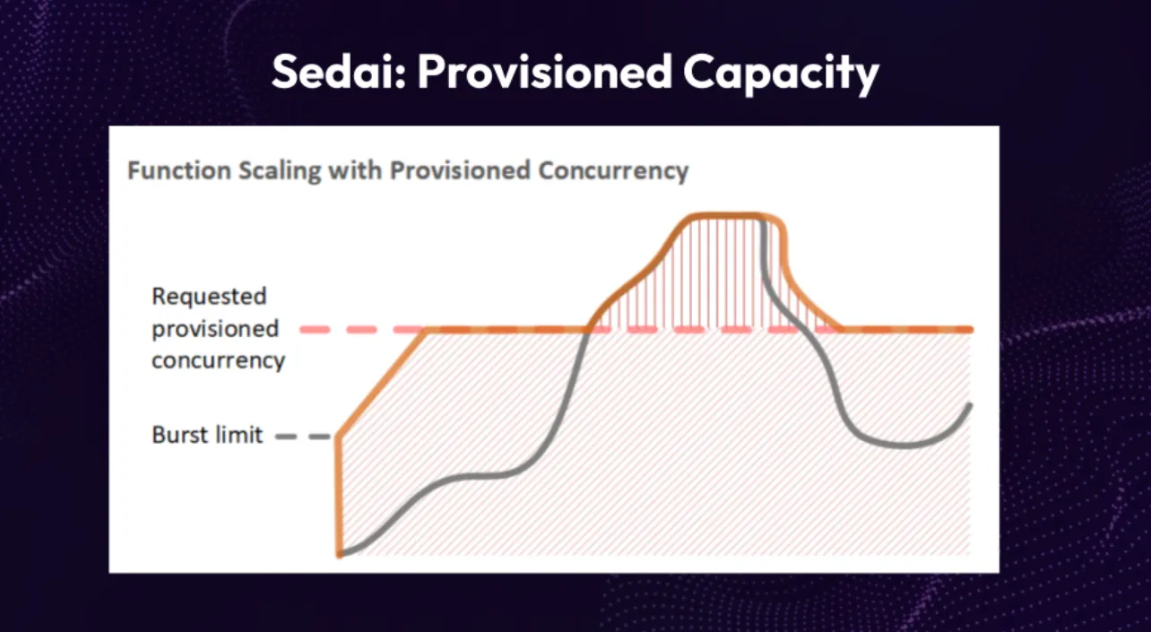 Moreover, provisioned capacity offers an additional advantage. It guarantees that there will always be at least five instances of your Lambdas accessible, which is particularly useful if you're approaching the limit of your overall account-level Lambda provisioning. Determining the optimal value for provisioned capacity can often be challenging, but through Sedai, this complexity is resolved. Sedai autonomously assesses and determines the most suitable provisioned capacity for all your Lambdas, making the process seamless and effortless for you. Another benefit of provisioned capacity is the assurance that your Lambdas will consistently meet the demands of your workload. By having a predetermined number of initialized instances, you can confidently handle spikes in traffic or high request volumes without worrying about performance bottlenecks.