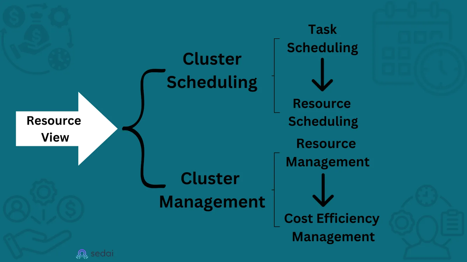 As shown in Figure 1 (Cluster Scheduling and Management in Resource View), cluster scheduling encompasses both task and resource scheduling, while cluster management includes resource management and cost efficiency management. Sometimes, these processes are simplified to focus on task scheduling, resource scheduling, and resource management. However, cost efficiency management often remains an implicit part of the overall scheduling strategy.
