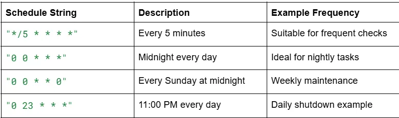 CronJobs in Kubernetes support a wide range of scheduling options. Here’s a quick overview of some common schedule patterns: