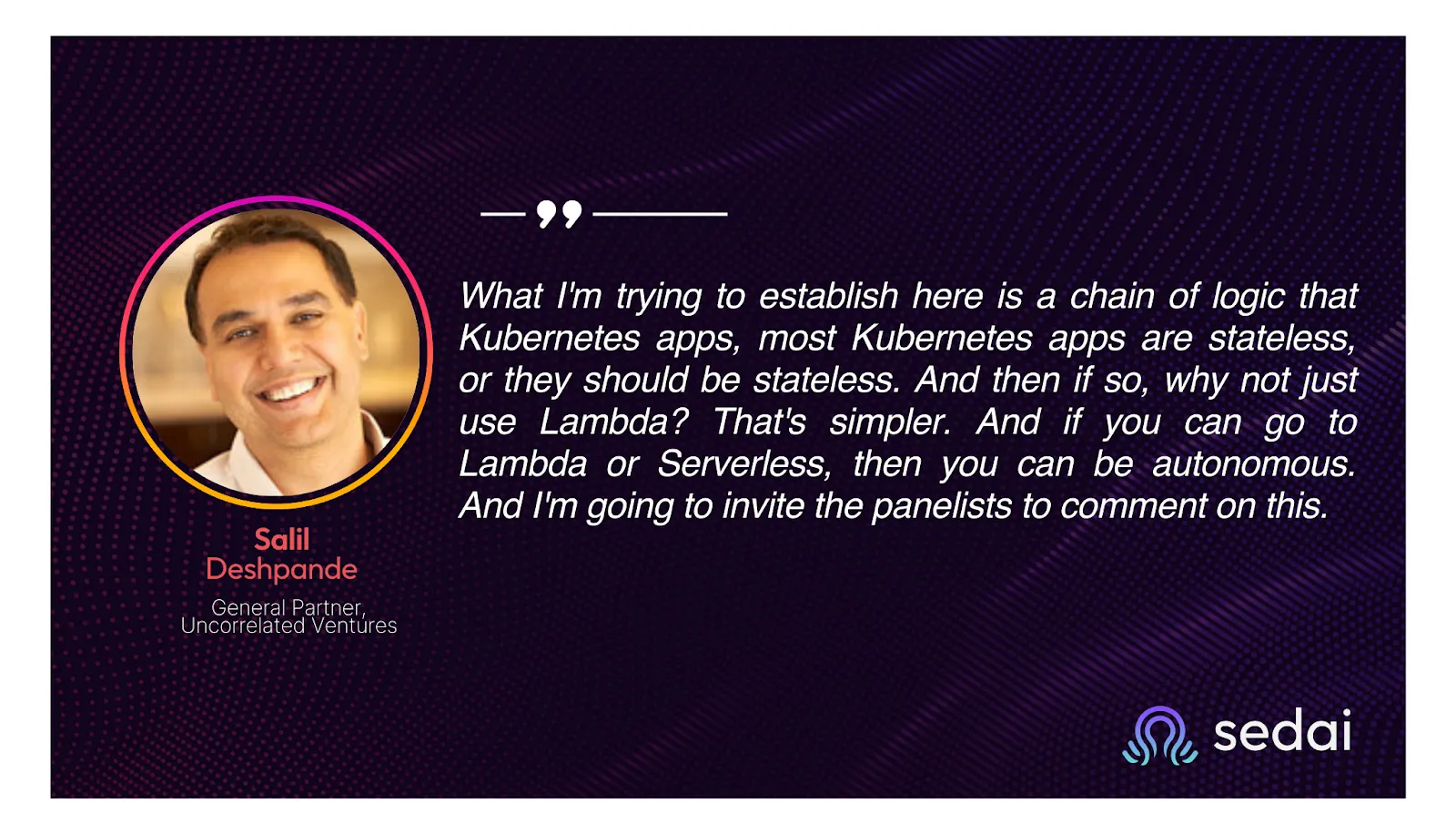 Overall, Shridhar Pandey's point in the panel is that for stateless applications, using Serverless options like Lambda can provide simplicity, autonomy, and a reduction in infrastructure management, while acknowledging that there may be exceptions and engineering considerations that influence the choice between Serverless and Kubernetes.