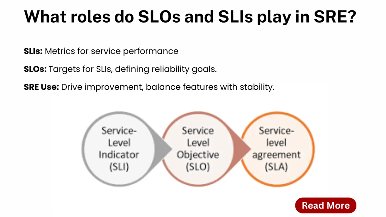 Service Level Indicators (SLIs) are quantitative metrics that measure the performance of a service. They are the foundation for establishing Service Level Objectives (SLOs) and Service Level Agreements (SLAs). The effectiveness of SLOs relies heavily on the accuracy and relevance of the SLIs used to define them.