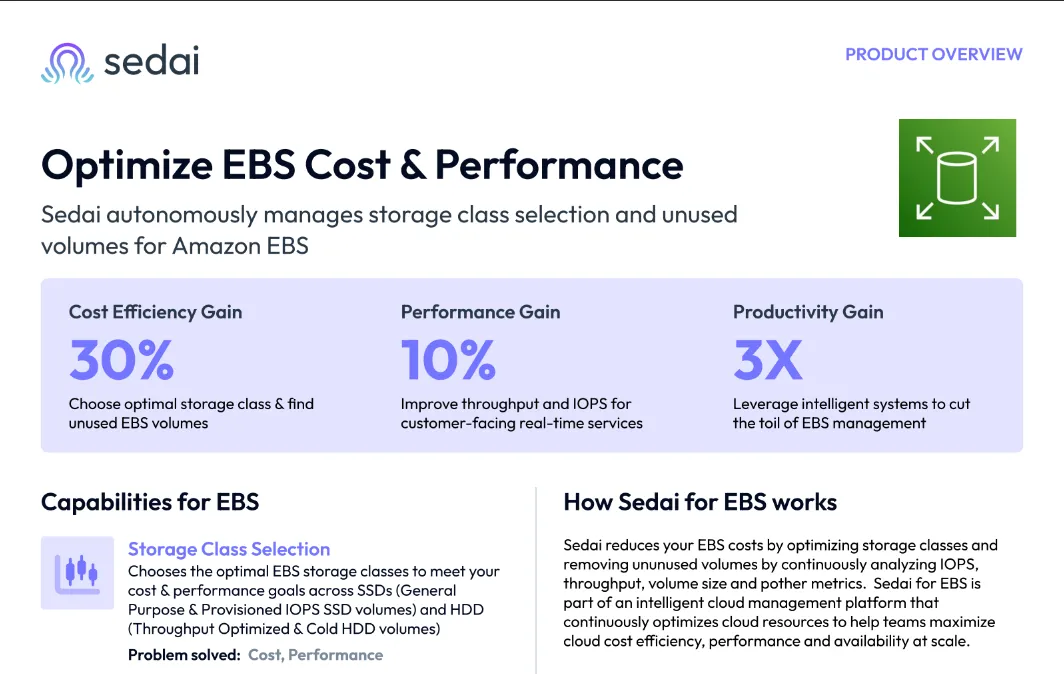 Overview of Sedai autonomous optimization & remediation for AWS EBS.