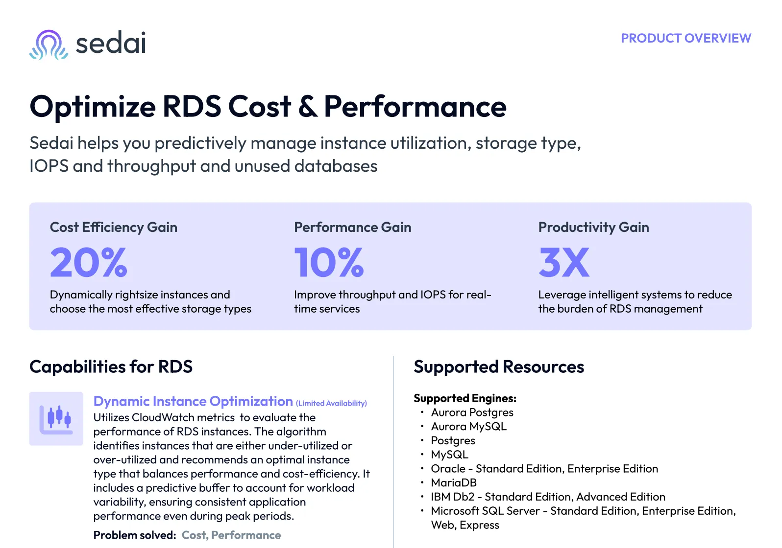 Overview of Sedai autonomous optimization & remediation for AWS RDS
